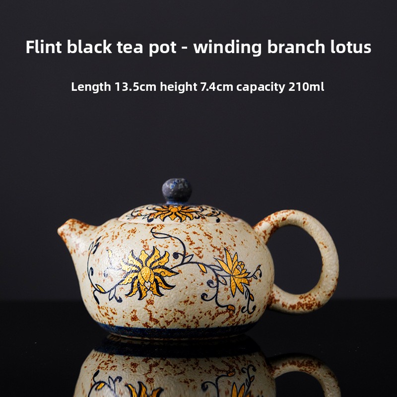 Twining Lotus Xishi Teapot Household Tea Brewing Pot High-end Retro Chinese Style Filter Single Pot Ceramic Kung Fu Tea Set Tea Drinking Pot